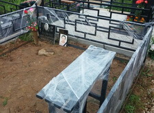 Перед нами стандартная могила, где уже захоронено два человека. Мы оставляем без изменения только ограду, ее мы только надежно зацементируем и покрасим. Все остальное мы изготовим и установим.