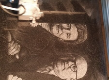 Решено было переделать все, если бы ограда не была такая крепкая, ее тоже заменили бы, но ограничились только ремонтом и перекраской. Для начала мы отобрали изображения для портрета и сделали макет гравировки.