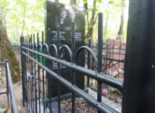Далее демонтируем все с территории могилы и выпрямляем ограду. Для этого потребовалось полностью откопать две задние ножки, выпрямить ограду и заново залить цементом.