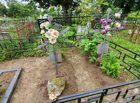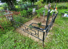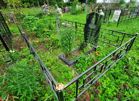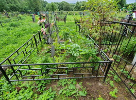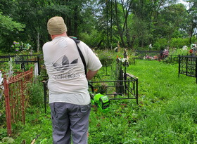 Уборка могилы на сельском кладбище