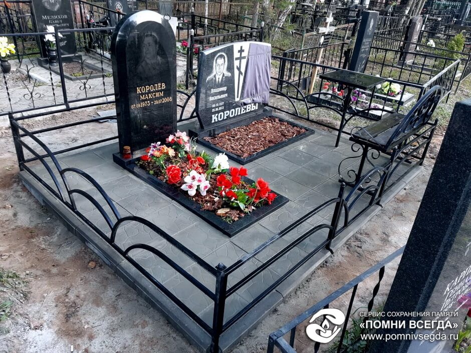 После высыхания нового наземного покрытия, мы произвели уборку на могиле, дополнительно высадив в цветник новые растения. Заказчик остался доволен качеством работы.
